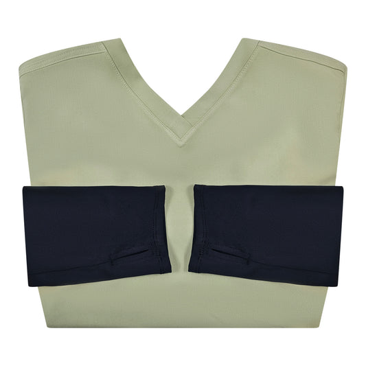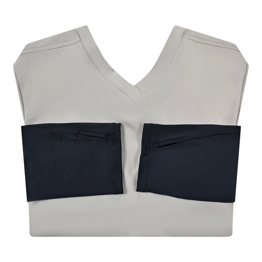 Introducing our Compressionfit Scrub Top with Built-in Compression Sleeves – the perfect blend of comfort and functionality. The attached sleeves extend through to the hands and provide a thumbhole to keep the sleeve in place while covering your hand as you work.